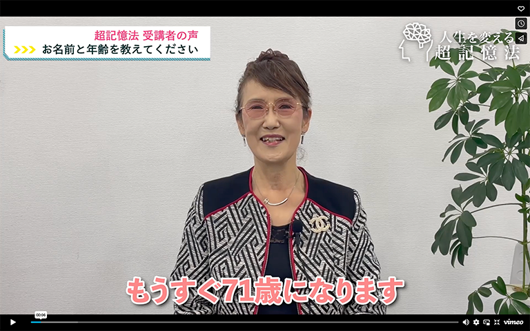 「年齢を重ねると忘れっぽくなる」は当たり前だと思っていたのが嘘だと体感できた。ここ2〜3年、階段を上り下りをするだけで用事を忘れてしまう。そんな状態を超記憶法が変えてくれました!
